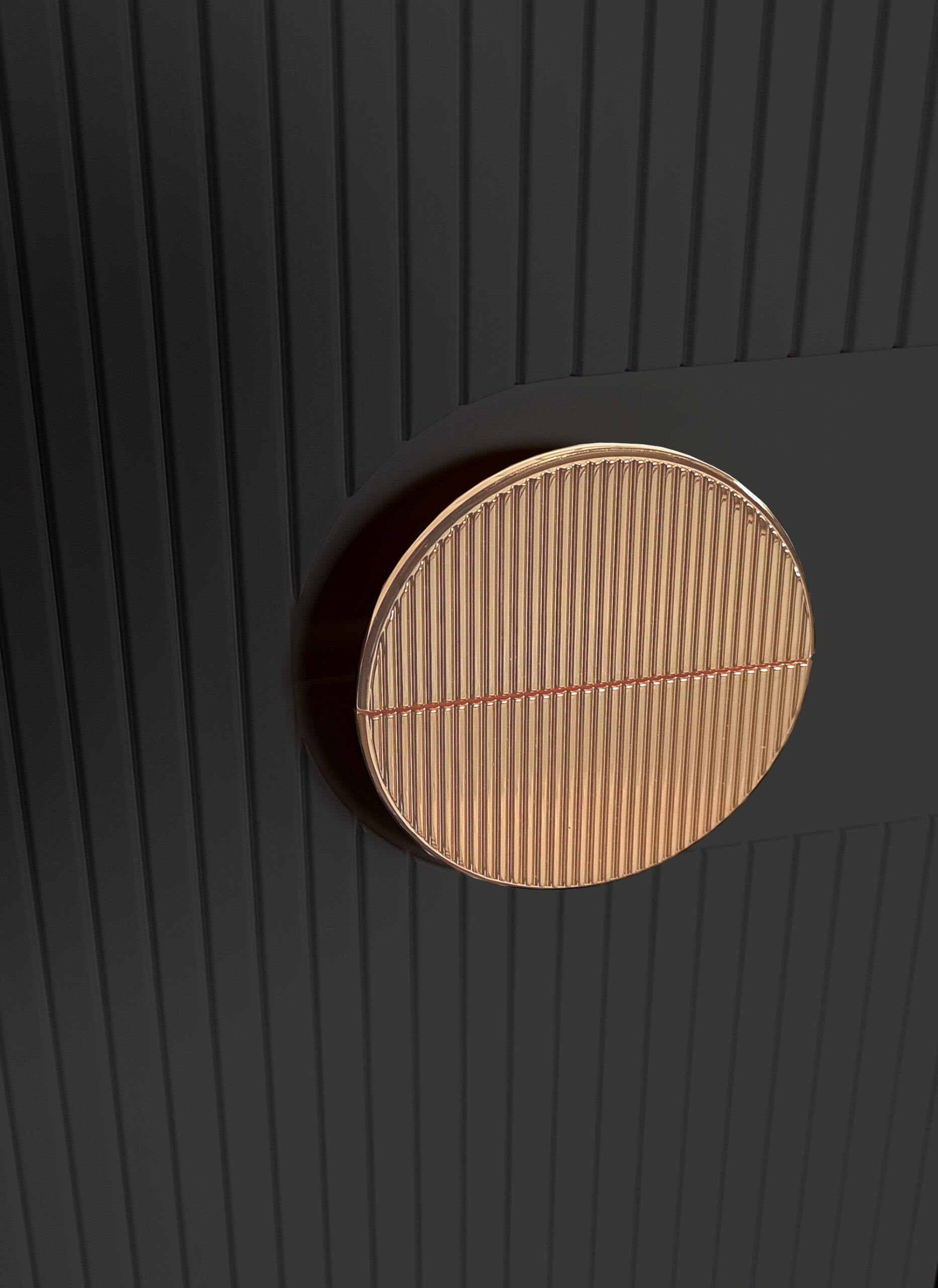 Regał zachwyca ryflowanym frontem z perfekcyjnie przygotowanym miejscem na złoty uchwyt.